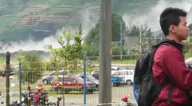 It came down just minutes before it was due to arrive at Dieng Plateau, where the Sileri Crater had been spewing cold lava, mud and ash as high as 164ft (50 metres) into the air since erupting on Sunday morning.